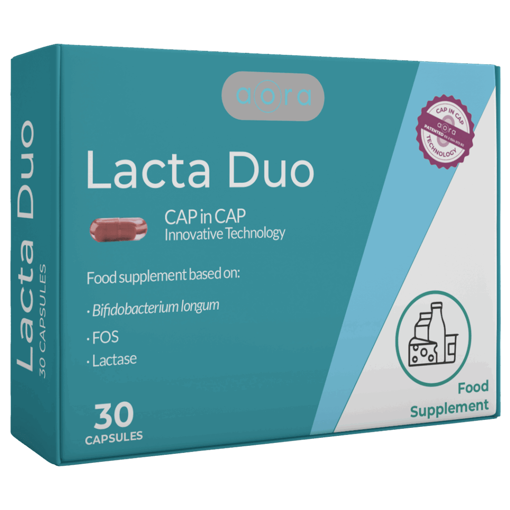 LACTA DUO is based on the combined action of lactase and a synbiotic, providing an alternative and efficient solution to treat digestive discomfort caused by lactose intolerance.